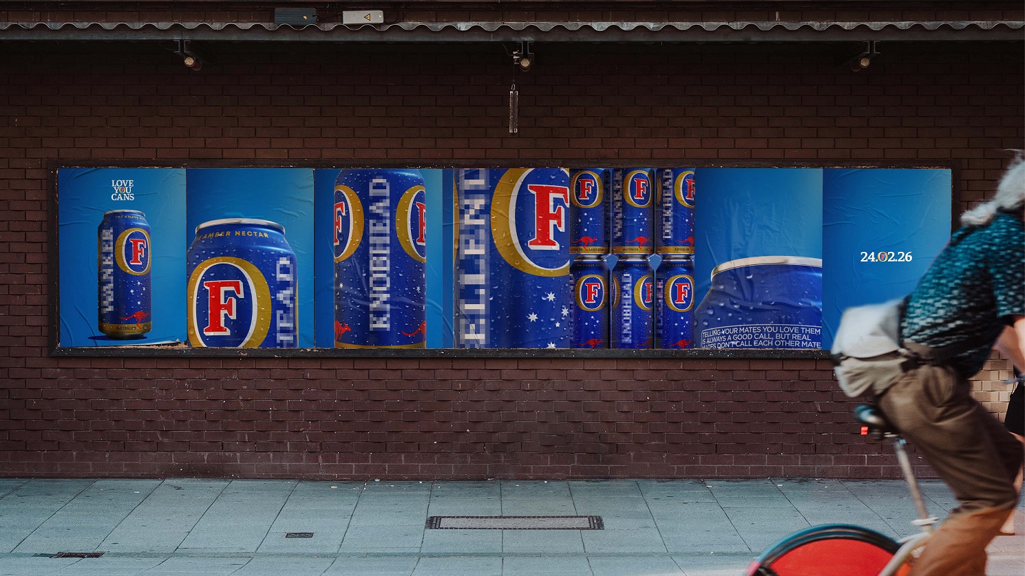 ‘Love You Cans’ invites men to break the ice with their mates by sending them a tinnie, emboldened with the words “b*llend, d**khead, kn*bhead, t*sser or w*nker”, as a gesture of authentic and light-hearted bonding. People can gift one of these cans of Foster’s to a friend, branded with their chosen nickname, by visiting www.loveyoucans.com.