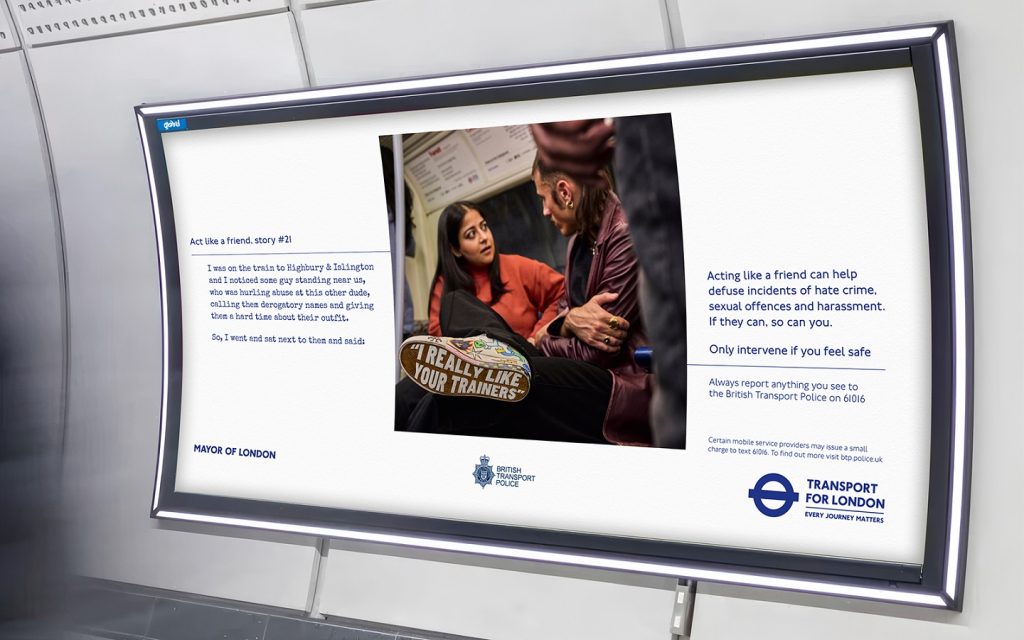 Today, Transport for London (TfL) launches a new campaign, ‘Act Like a Friend’, developed with creative agency of record VCCP and WPP Media’s Wavemaker team, which developed the strategy and media planning. The campaign aims to empower passengers to safely intervene when they witness hate crime, sexual harassment or offences on the network, while reinforcing the message that criminal behaviour has serious consequences.