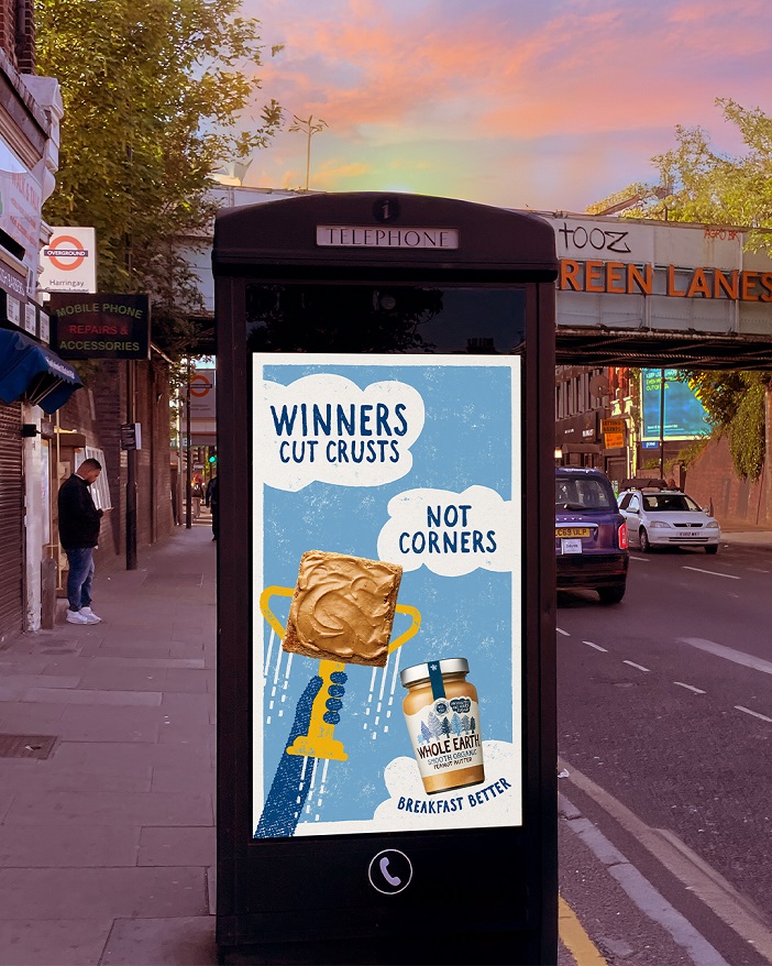 Rich Denney, Joint Chief Creative Officer says, “For years we’ve been told breakfast is the most important meal of the day, and who better to tell us than, Whole Earth, the nation’s No1 peanut butter, with delicious headlines and beautifully crafted design to match. Tasty.”